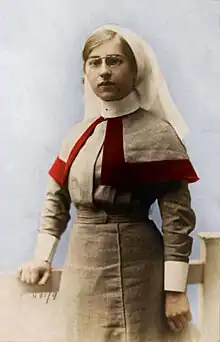 Spindler entered nursing in 1911 at the City Fever Hospital, Wakefield and trained at Leeds Township Infirmary from 1912 to 1915.[4] She joined the Queen Alexandra's Imperial Military Nursing Service (QAIMNS) in October 1915. To join the Queen Alexandra's Imperial Military Nursing Service it was necessary to be single or recently widowed, to have completed a three-year training course in a hospital approved by the War Office and to be over 25 years old; Spindler was only 24 at the time she signed up. On her application form, she said her year of birth was 1889 rather than 1891. It is possible that this was a mistake, but she may have concealed her true age so she would appear to be old enough to serve.[5]
