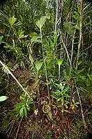Giant plants of N. rafflesiana have been recorded from a number of isolated localities on the northwestern coast of Borneo and one population has been found near the seaside town of Sematan, around 110 km west of Kuching.[16] The typical habitat of this form is dense heath forest, especially around vegetation boundaries.[16]