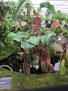 Nepenthes robcantleyi plants (foreground) at the Borneo Exotics display for the 2011 Chelsea Flower Show