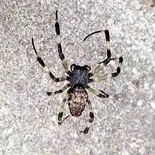 Females reach a body length of about 15 millimetres (0.59 in). The legs and palp are annulated yellow and black. Male body size less than 5 millimetres (0.20 in), with mostly grey-black legs.[2]