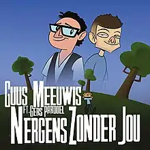 "Nergens zonder jou" (Dutch pronunciation: [ˈnɛrɣənsɔndər ˈjʌu]; English: "Nowhere Without You") is a song recorded by Dutch artists Guus Meeuwis and Gers Pardoel. It was released on 4 November 2011 through Universal Music Group.[1] The song was written by Guus Meeuwis, Jan Willem Rozenboom and Jan Willem Roy and was produced by Rob van Donselaar and Rozenboom.[2] At first, "Nergens zonder jou" was recorded only by Guus Meeuwis, for his eighth studio album Armen open, without rap vocals by Gers Pardoel. Later, the artists decided to collaborate and the song including Gers Pardoel's rap was released as a digital download.