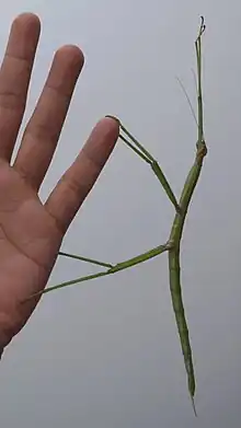 Nesiophasma giganteum[1] is a recently described species of stick insect, order Phasmatodea. It is endemic to Peleng.[2] Adult females are large, typically measuring 250–300mm (10–12 inches) in body length. Both sexes are wingless.