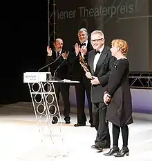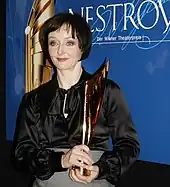 The Nestroy Theatre Prize is an Austrian theatre award named after the poet Johann Nestroy.[1] In 2000, the city of Vienna decided to combine two less noticed theatre awards: the Kainz Medal and the Nestroy Ring for Viennese Satire.[1] The prize honours outstanding achievements at the Viennese and other Austrian theatres.[2] The prize has been awarded annually in eight up to fourteen categories. Its ceremony is held in Vienna and broadcast live on national television.[3]