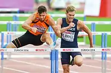 Eelco Sintnicolaas running the 110 metres hurdles