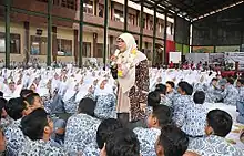 Netty giving a speech during her visit to SMAN 1 Kota Tasikmalaya in 2017