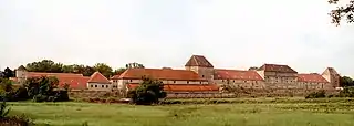 Neugebäude Palace (German: Schloss Neugebäude) is a large Mannerist castle complex in the Simmering district of Vienna, Austria. It was built from 1569 onwards, at the behest of the Habsburg Emperor Maximilian II. The site of the palace is said to be where the Ottoman Sultan Suleiman the Magnificent's tent was erected during the 1529 Siege of Vienna.[1][2] The palace was apparently modeled after it.