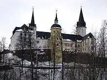 Neuhausen/Erzgeb. (lit. Neuhausen/Ore Mountains) is a municipality in the district of Mittelsachsen, in Saxony, Germany. It consists of Neuhausen proper and the Ortsteile (divisions) Dittersbach, Frauenbach, Heidelbach, Cämmerswalde, Rauschenbach, Neuwernsdorf and Deutschgeorgenthal.[3] Neuhausen hosts the first nutcracker museum in Europe, which houses more than 5,000 examples, the largest collection of nutcrackers in the world and is also known as a location for winter sports.