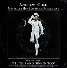 "Never Let Her Slip Away" is a song written by American musician Andrew Gold, who recorded it for his third album, All This and Heaven Too (1978). The single peaked at #5 on the UK Singles Chart, spending 7 weeks in the chart's top 10, and also peaked at #67 on the Billboard Hot 100 in 1978. Queen frontman Freddie Mercury contributed harmony vocals to the song, as an uncredited background singer.[2] A 1992 cover version by British dance outfit Undercover was also an international hit.