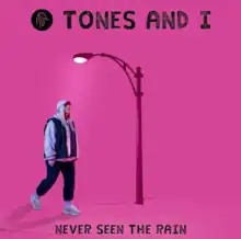 "Never Seen the Rain" is a song by Australian singer Tones and I, released in Australia on 16 July 2019 as the third single (second in the US) from Tones and I's debut EP The Kids Are Coming. Upon release Tones and I said "[It's] about people who live the same repetitive life in fear of failure. So, they never try."[1][2] In January 2020, the single was released outside of Australia. In February, it achieved gold status in New Zealand. At the end of August 2020 it was certified 5× platinum by ARIA for shipment of 350,000 copies.