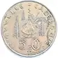 In 1949, aluminium coins in 50 centime, 1 and 2 franc denominations were introduced, followed by an aluminium 5 franc coin in 1952. The 50 centime coin was only issued in 1949. In 1967, nickel 10, 20 and 50 franc coins were introduced, followed by a nickel-bronze 100 franc coin in 1976.[2]