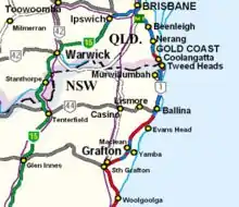 - ↑ "New England Highway". Kyogle Examiner. National Library of Australia. 14 February 1933. p. 2. Retrieved 21 January 2019.