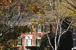 The New Hampshire Governor's Mansion is located in a rural-residential setting about 2 miles (3.2 km) north of downtown Concord, on the west side of Mountain Road (New Hampshire Route 132) north of the East Concord exit from Interstate 93. It is set on eleven landscaped acres, with views toward downtown Concord, Rattlesnake Hill, and the Merrimack River valley. The house is a 2+1⁄2 story brick building, with a side gable roof and end chimneys. It is oriented facing south, with a five-bay front facade. The main entrance is at the center, flanked by sidelight windows and topped by an entablature and granite lintel. Windows are set in rectangular openings, with granite sills, and granite lintels on the first floor windows. The street-facing east facade has a pedimented brick gable with a deep recess at the center and ogee crown moulding along the rake edge.[3]