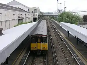 New Hythe railway station is on the Medway Valley Line in Kent, England, serving the village of New Hythe. It is 38 miles 3 chains (61.2 km) down the line from London Charing Cross via Strood and is situated between Snodland and Aylesford. The station and all trains that serve the station are operated by Southeastern.
