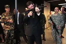 The Minister of Defense of Albania takes aim on the Virtual Interactive Combat Environment