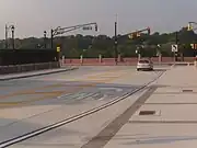 Route 172 begins at the intersection of Paul Robeson Boulevard (formerly Commercial Avenue prior to 2019)[2] and George Street (CR 527, signed as CR 672) in New Brunswick. Route 172 (with CR 527 unsigned at this point) travels as a two-lane road southeast along George Street first passing residences before intersecting Bishop Street and Jones Avenue where both sides of the road become flanked by the Douglass Campus of Rutgers University. It intersects Nichol Avenue and Chapel Drive which both serve the campus. The road crosses a small stream and passes under a pedestrian overpass before reaching a roundabout marking the northern terminus of CR 617 (Ryders Lane). Route 172 turns to the north and becomes a four-lane small divided highway. A pair of jughandles serve Gibbons Drive with a signalized intersection in the center. Past this intersection, a ramp providing access for eastbound Route 172 traffic to Route 18 south exits the state highway. Route 172 crosses over the southbound lanes and the northbound express lanes of Route 18 before the state highway terminates at a signalized intersection with the northbound local lanes of Route 18.[1][3]