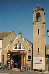In 1919 the Church of England parish of St Nicholas, Marston opened a mission hall in Ferry Road to serve the parts of New Marston that had been built by that time.[7] Somewhat later a campanile was added, its style and sand-lime brick suggesting that it is the work of the then Oxford Diocesan Architect T. Lawrence Dale.