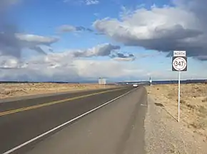 State Road 347 (NM 347) is a partially completed road that starts at Interstate 40 on the West Mesa, approximately 8 miles (12.9 km) west of downtown Albuquerque. It runs north-northeast, following Paseo del Volcan to its northern terminus at US-550 in Bernalillo. Currently it exists in two discontinuous segments: the southern segment is 9.4 miles (15.1 km) long, and follows Paseo del Volcan from I-40 to Paseo del Norte (NM 423) near Double Eagle II Airport. The 10.2 miles (16.4 km) northern section begins at Unser Boulevard in Rio Rancho and ends at US-550 in Bernalillo, which incorporates a 3.4 mile extension of Paseo del Volcan from Iris Road to US-550 that was completed in February 2011. The remaining 10 miles (16.1 km) segment from Paseo del Norte to Unser Boulevard is not yet built. While the New Mexico Department of Transportation owns the right-of-way for the unbuilt section, its completion is contingent upon future growth within Albuquerque and Rio Rancho and the availability of funding.