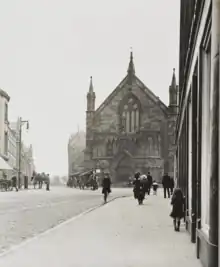 The church ministered in an area of significant poverty, founding missions, a Sabbath school, and a day school.[7] In 1852, the congregation assumed responsibility for a Free Church mission in the Cowgate, which, from the following year, met at Mary's Chapel. Under Brown, the mission proved a success and was elevated to a full charge in 1859.[8] The church's district (equivalent to a parish) was thereafter moved to cover the Bristo and, in 1880, the congregation purchased a former dance hall on Marshall Street to serve as mission premises.[3][9]