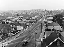 The New North Road corridor grew as a suburban area between the 1900s and the 1930s, due to the Auckland tramlines. The tramline opened at Kingsland in 1903, followed by Morningside in 1912, Mount Albert in 1915 and eventually Owairaka in 1936.[9]