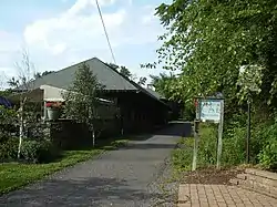 The building is adjacent to a rail trail,[71] and there is a 3-foot (0.91 m) bike rack by the building's northern end.[72] The village of New Paltz purchased its section of the former Wallkill Valley rail corridor from Conrail in 1991, formally opening it on October 9, 1993 as a public walkway, the Wallkill Valley Rail Trail.[73] The permit allowing The Station to operate as a restaurant also required the placement of a sign in the building's parking lot to indicate the presence of the trail.[69] The village allowed The Station to place a public picnic table under an overhang by the rail trail, on the condition that the restaurant did not provide outdoor food service. In August 1999, the restaurant was forced to remove a gas tank and gas line that were placed under the trail; failure to do so could have resulted in the revocation of The Station's certificate of occupancy, preventing the building from being operated as a restaurant.[74][75]