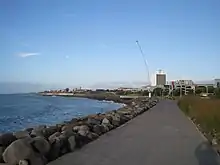 The Coastal Walkway is a 12.7-kilometre (7.9 mi) long walkway located along the coast of New Plymouth, New Zealand. The walkway stretches from near Port Taranaki, past the central city, through Hickford Park, past Bell Block Beach and to Tiromoana Crescent in Bell Block, north-east of New Plymouth.[1] The walkway runs through a number of bridges, most notably, the Te Rewa Rewa Bridge.[2]