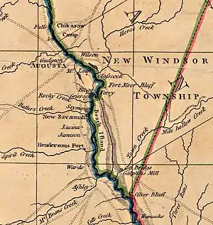 The dead town of New Savannah began circa 1740 as a Chickasaw village on the Savannah River, at the mouth of Butler Creek below Augusta. Stories as to the circumstances vary, but in any case some portion of the Horse Creek Chickasaws under Squirrel King moved across the river and founded the town from which they farmed, hunted and scouted until the Revolutionary War. In 1757, CPT Daniel Pepper estimated the population there as "seventy Gun Men" (Milling 1940:196).
