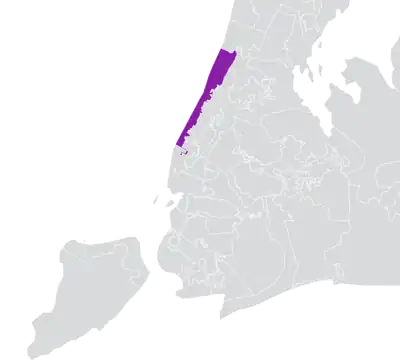 The district overlaps with New York's 10th, 12th, and 13th congressional districts, and with the 67th, 69th, 70th, 71st, 72nd, and 75th districts of the New York State Assembly.[5]