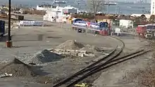 In November 2011 the Port Authority hired HDR, Inc. of Omaha, Nebraska to rehabilitate Greenville Yard. Work included rehabilitating the railyard and waterfront structures, including a rail barge and transfer bridge, demolishing two other bridges, designing a new barge and two new bridges, and adding 10,000 feet of track.[10][11] In July 2012 NYNJ began operating out of the 65th Street Yard. Initial cargo included apples, home heating oil, new automobiles, and scrap metal.[12] The railroad north along First Avenue was refurbished and new tracks laid to support operations at the South Brooklyn Marine Terminal, including an automobile import pier and a new municipal recycling plant.[13]