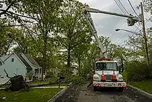 NYSE&G lineman clearing a downed tree off a power line after the May 2018 Northeast derecho in Walden, New York