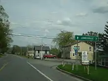 After CR 33, NY 165 turns northeast again, leaving Dorloo for the hamlet of Seward. In Seward, NY 165 crosses south of a pond, entering downtown Seward as a two-lane residential street. Toward the eastern end of the hamlet, NY 165 intersects with CR 5 (Slate Hill Road). Bending southeast, the route crosses the western terminus of CR 30 (Gardnersville Road) before bending southeast and east into the hamlet of Janesville. In Janesville, the route intersects with NY 10, marking the eastern terminus of NY 165 northwest of Cobleskill.[3]