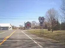 NY 227 east at Perry City, where the route intersects CR 3 and the northern terminus of NY 228