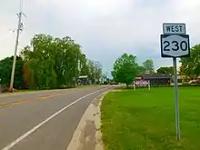 In 1908, the New York State Legislature created Route 13, an unsigned legislative route extending from Bath to Dundee via modern NY 54, County Routes 87 and 88 (CR 87 and CR 88) in Steuben County, and NY 230.[4][5] On March 1, 1921, Route 13 was reassigned elsewhere in the state as part of a partial renumbering of New York's legislative route system.[6] NY 230, meanwhile, was assigned in the 1930 renumbering of state highways in New York to its current alignment from NY 54A (now NY 54) in Wayne to NY 14A near Dundee.[2][7] The route was extended eastward along NY 14A and Dundee–Starkey Road to NY 14 east of Dundee c.1932,[8][9] but truncated back to NY 14A west of Dundee in the early 1940s.[10][11] A short spur connecting NY 230 to CR 87 in Tyrone, formerly part of legislative Route 13, is designated as NY 961L, an unsigned reference route.[12]