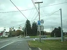New York State Route 349 (NY 349) is an east–west state highway in Fulton County, New York, in the United States. The highway extends for 3.58 miles (5.76 km) across largely rural terrain from an intersection with NY 30A in the town of Johnstown to a junction with NY 30 in the town of Mayfield. The westernmost section of the route is known as East State Street Extension. NY 349 was assigned c.1931 to the portion of its alignment between County Route 154 (CR 154; then NY 148) and NY 30. It was extended west to its present terminus in the mid-1950s after NY 148 was rerouted onto an arterial highway between Gloversville and Mayfield.