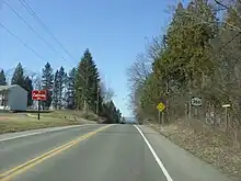 Also assigned at this time was NY 26, a highway that initially extended from Ithaca to Syracuse via Moravia and Skaneateles. NY 26 began in downtown Ithaca and overlapped with NY 13 east to Etna, where it turned northeast to follow old legislative Route 9 to Freeville. Past Freeville, the route continued northward toward Syracuse on modern NY 38.[6][7] The overlap between NY 13 and NY 26 was eliminated in the late 1920s when NY 26 was truncated to begin at the former east end of the concurrency in Etna.[7][8] In the 1930 renumbering of state highways in New York, the NY 26 designation was reassigned to another highway off to the east.[9] The southernmost portion of NY 26's former routing between Etna and Freeville was redesignated as NY 366.[2][10]
