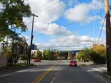 New York State Route 366 (NY 366) is an east–west state highway located entirely within Tompkins County in the Finger Lakes region of New York in the United States. It runs for 9.40 miles (15.13 km) from State Street (NY 79) just east of downtown Ithaca to NY 38 in Freeville. NY 366 parallels Fall Creek from Varna to Freeville and passes along the southern edge of the Cornell University campus. NY 366 was assigned as part of the 1930 renumbering of state highways in New York; however, it was initially nothing more than a connector between NY 13 in Etna and NY 38 in Freeville. In the 1960s, NY 13 was moved onto a new expressway bypassing Ithaca to the west and north. The former surface routing of NY 13 into downtown Ithaca became an extension of NY 366.