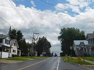New York State Route 374 (NY 374) is a state highway in the North Country of New York in the United States. The route follows a generally northwest to southeast progression; however, the portion of the route within Franklin County runs north–south and is signed in the same manner. The western terminus of NY 374 is at a junction with U.S. Route 11 in the village of Chateaugay. Its eastern terminus is at an intersection with NY 22 north of the city of Plattsburgh.