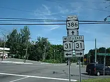 NY 386 at NY 31 in Gates. This junction was the original southern terminus of NY 386.