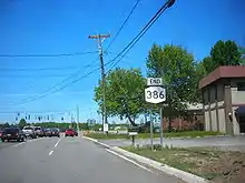 The portion of NY 386 between Scottsville and NY 33A in Chili was originally designated as part of Route 16, an unsigned legislative route extending from Cuba to Rochester, in 1908.[6][7] On March 1, 1921, Route 16 was truncated to end at Route 6 (modern NY 5) in Le Roy as part of a partial renumbering of New York's legislative route system. The portion of former Route 16 north of Caledonia became part of Route 15.[8] The section of Route 15 between Scottsville and Chili became part of NY 251, a new route stretching from NY 33 in Gates to then-NY 15 in Victor, in the 1930 renumbering of state highways in New York. NY 386, meanwhile, was assigned by the following year to the portion of Elmgrove Road between NY 31 in Gates and U.S. Route 104 (now NY 104) in Greece.[2][3]