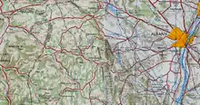 NY 43 was truncated on its western end to the junction of 3rd Avenue and Broadway in downtown Rensselaer in the early 1970s, eliminating the overlap with US 9 and US 20 through Albany. Its former routing from Schoharie to Albany was renumbered to NY 443.[16][17] NY 43 remained on 3rd Avenue up to the late 1990s when it was rerouted to follow a new highway to I-90 exit 8 west of Defreestville. The realignment eliminated the overlap with US 4 and also took NY 43 outside of the Rensselaer city limits for the first time since being extended across the Hudson River in 1930.[18][19] The former alignment of NY 43 along 3rd Avenue from Broadway to Barracks Road became part of NY 151;[19] the remainder was designated NY 915E, an unsigned reference route.[20]