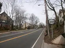 New York State Route 448 (NY 448) is a 3.90-mile (6.28 km) long state highway in western Westchester County, New York, in the United States. The route begins in the village of Sleepy Hollow at U.S. Route 9 (US 9) and goes in a northeast direction through the Pocantico Hills community in Mount Pleasant. It ends at NY 117 in Mount Pleasant, near the junction of NY 117 with Saw Mill River Road (NY 9A and NY 100) and the Taconic State Parkway. From 1930 to November 1970, NY 448 was part of NY 117.