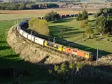 The New Zealand EF class locomotive (originally Class 30)[1] is a class of 25 kV 50 Hz AC electric locomotives that operate on the North Island Main Trunk (NIMT) between Palmerston North and Te Rapa in New Zealand. Built by Brush Traction in Loughborough, England between 1986 and 1988[1] to run on the new electrified central section of the NIMT, at 3,000 kilowatts (4,000 hp), they are the most powerful locomotives to operate in New Zealand.