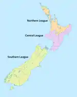 The New Zealand Men's National League is a men's football league at the top of the New Zealand football league system. Founded in 2021, the New Zealand National League is the successor to the New Zealand Football Championship. The league is contested by ten teams, with teams qualifying from their regional leagues. Four teams qualify from the Northern League, three qualify from the Central League, two qualify from the newly formed Southern League and the Wellington Phoenix Reserves are automatically given a spot each year.[1][2][3]
