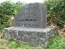 The village has had various names in Irish such as "An Droichead Nua" as used officially, but there are also "Gort an Iomaire" and "Cruffan". The English name Newbridge comes from the village's bridge over the Shiven River.