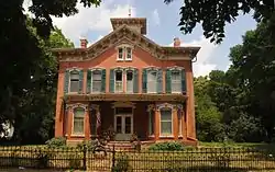 The Newell A. Whiting House is a historic building located in Onawa, Iowa, United States. Whiting was a hardware merchant and sawmill owner, who built this house for his second wife.[2] It is a simple, yet fairly pure, an example of the Italianate style constructed in the mid-19th century.[3] The 2+1⁄2-story brick house features bracketed eaves, wall dormers, tall, narrow windows with metal hood moldings, bay windows on the main floor, and alongside porch on the east elevation. It is capped with a hip roof and a cupola. The house was listed on the National Register of Historic Places in 1990.[1]