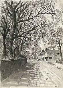 An enclosure and drainage act for Cottingham was passed in 1766; the Beverley and Skidby Drain was enabled by an act of 1785; and the Beverley and Barmston Drain was built after an enabling act of 1798. The Cottingham Drain improved the marshy land in the area.[note 3] The Barmston, and the Skidby Drains were built primarily for areas beyond Newland.[10] The Barmston Drain crossed Beverley Road east of the village running very approximately parallel with, and around 0.5 miles (1 km) west of, the River Hull.[11] At the point the drain passes under the Beverley Road "Bridge End Cottage" (1785) is still extant.[12][map 3] The Skidby Drain ran roughly parallel to the Barnston Drain under 0.25 miles (0.4 km) east.[11] Three houses on the south side of Cottingham Road are remnants of the village, dating to the late 1700s.[13]