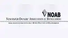 Newspaper Owners' Association of Bangladesh (NOAB) (Bengali: বাংলাদেশ সংবাদপত্র মালিক সমিতি) is an industry trade association of newspaper owners in Bangladesh.[1][2] The former President of Newspaper Owners' Association of Bangladesh is AK Azad, publisher of the daily New Age and chairman of Ha-Meem Group.[3][4] Newspaper Owners' Association of Bangladesh and Bangladesh Sangbadpatra Parishad together represent the interest of the print media industry in Bangladesh.[5]