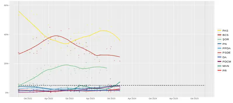 - ↑ "SONDAJ. PAS ar avea cele mai multe mandate de deputat, iar Maia Sandu ar câștiga detașat primul tur, dacă duminica viitoare ar avea loc alegeri" (in Romanian). tvrmoldova.md. Retrieved 2023-04-20.