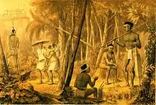 Ngaju people of southern Borneo as depicted by the first explorer to Borneo, Carl Schwaner, 1854.