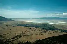 The entire southern half of the district is designated as the Ngorongoro Conservation Area (NCA) which is governed by the Ngorongoro Conservation Area Authority (NCAA).[9] The conservation area is the only one of its kind in Tanzania with all other of the country's protected areas designated as game reserves and national parks. The NCAA uniquely allows human habitation within the protected area, but places restrictions on land-use in the NCA, including cultivation and livestock grazing. Whilst watering of cattle is permitted, human habitation and livestock grazing are forbidden in the Ngorongoro Crater.