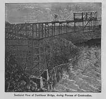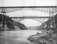 The Niagara Cantilever Bridge or Michigan Central Railway Cantilever Bridge was a cantilever bridge across the Niagara Gorge. An international railway-only bridge between Canada and the United States, it connected Niagara Falls, New York, and Niagara Falls, Ontario, located just south of the Whirlpool Bridge, and opened to traffic in 1883, it was replaced by the Michigan Central Railway Steel Arch Bridge in 1925.[1]